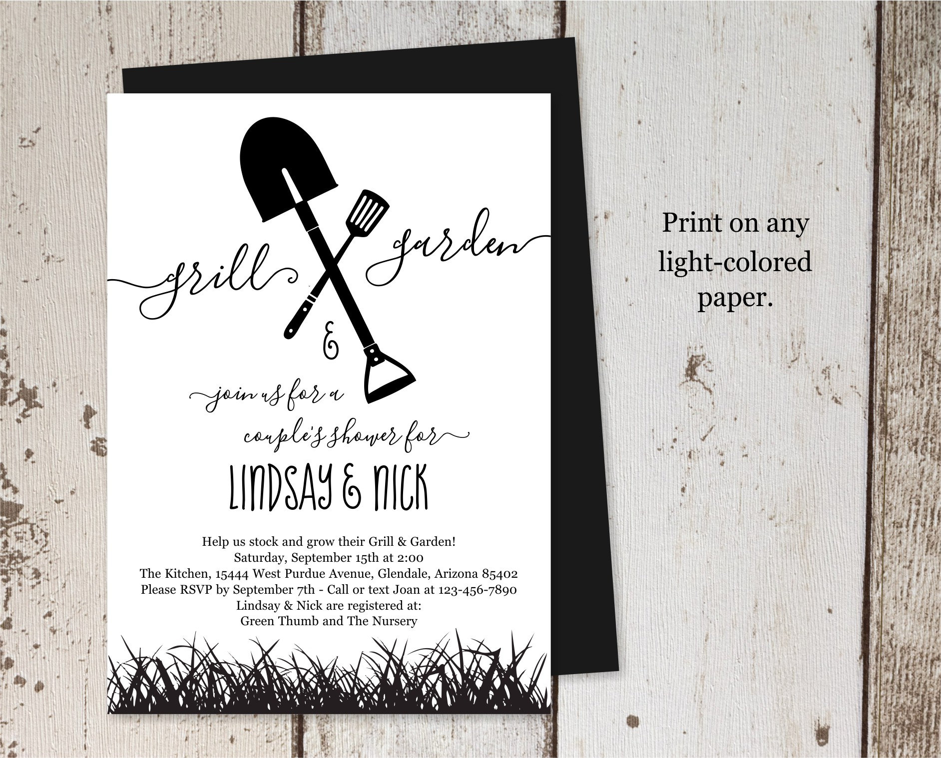 Grill & Garden Shower Invitation Template (black ink only*)