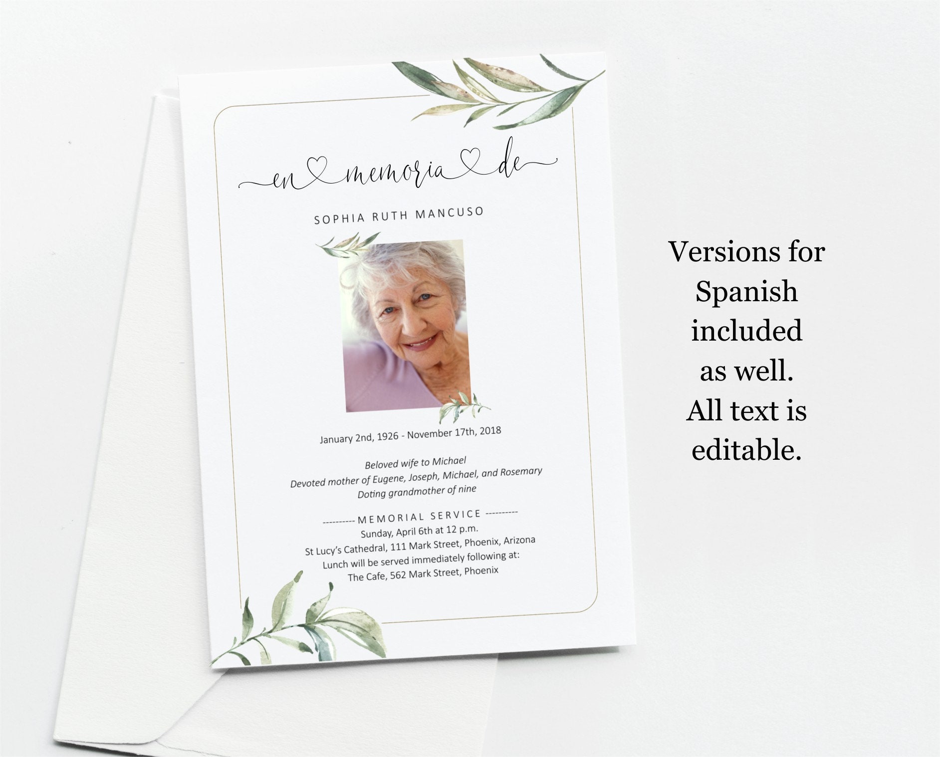 * Funeral Announcement Card Template *